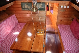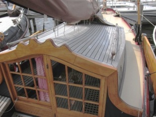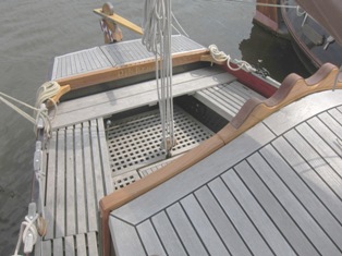 Zwaarden en roer van eiken. Nieuw teakdek op de roef.