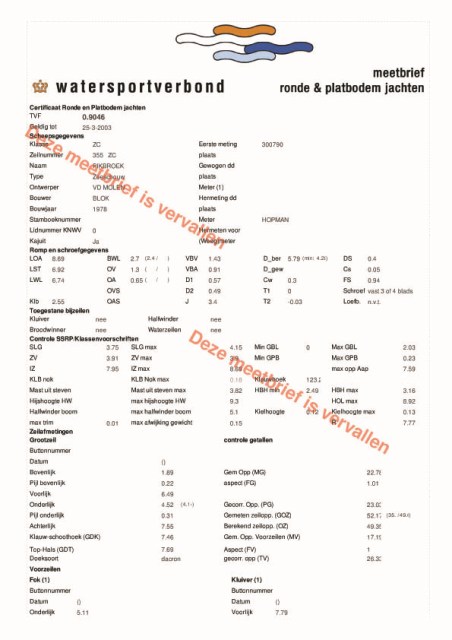 Waterverplaatsing ongeveer 7 ton.